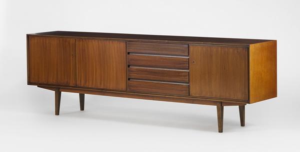 Teck, 3 vantaux, 4 tiroirs, 75x240x45 cm