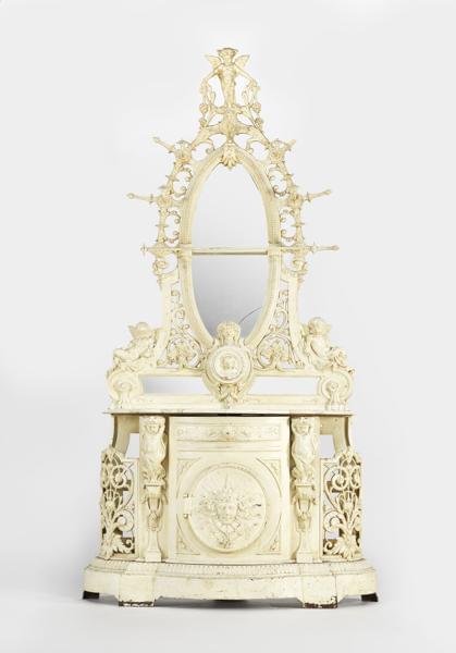 Métal, et métal laqué chocolat et blanc, 200x152x52 cm. Provenan...