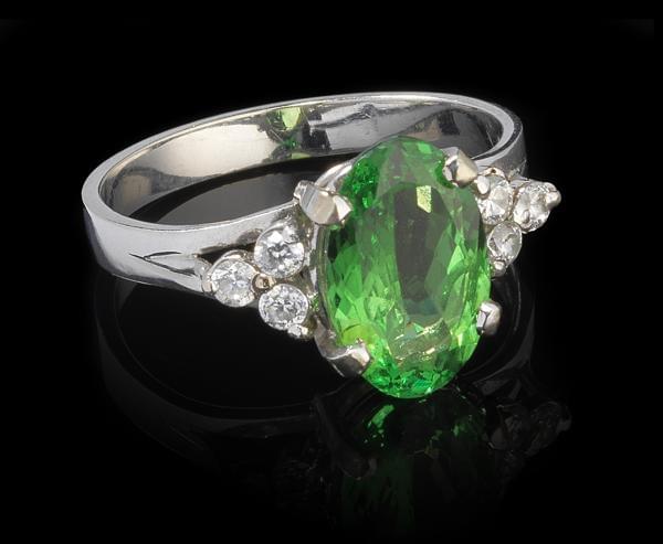 3417. *Bague sertie d'une tourmaline verte taille ovale (env. 1,7 ct)