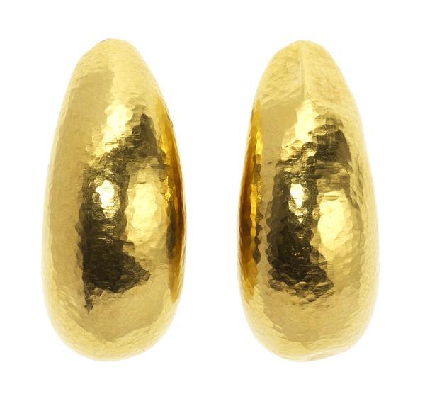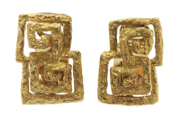 3420. Zolotas, clips d'oreilles à motifs de grecques ajourées et styli...