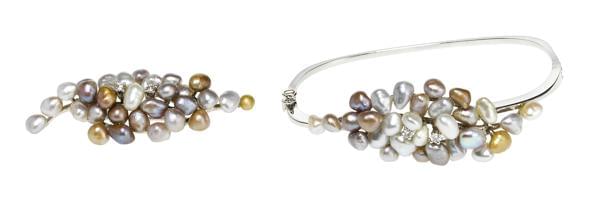 3407. Ensemble d'un bracelet jonc ouvrant et d'une broche