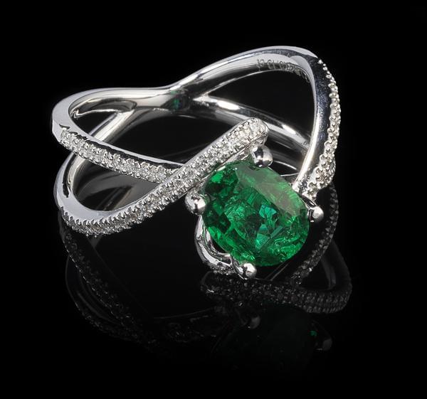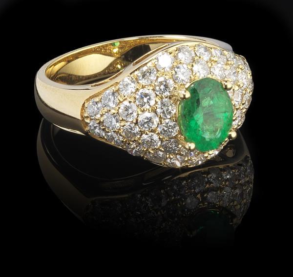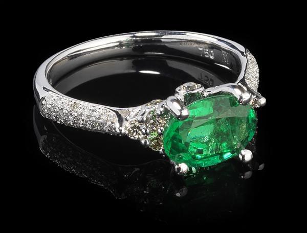 3435. Bague sertie d'une émeraude taille ovale (1,49 ct)