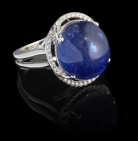 3492. *Bague sertie d'un saphir taille cabochon (env. 20 ct) entouré d...