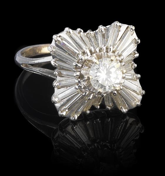 3419. Irena Brynner, bague stylisée centrée d'un pavage de diamants