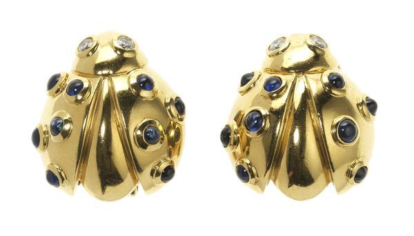 Pavées de saphirs taille cabochon et aux yeux sertis de diamants...
