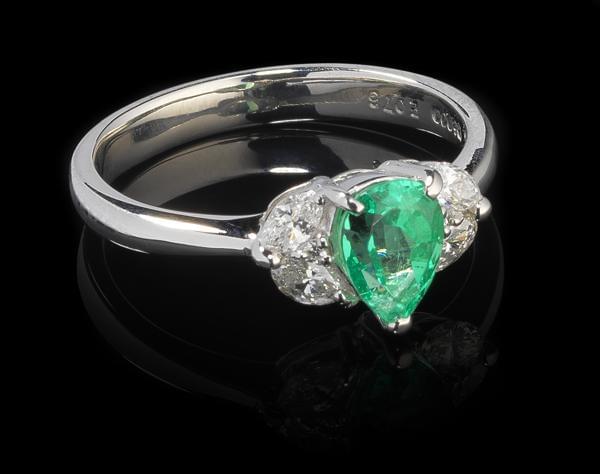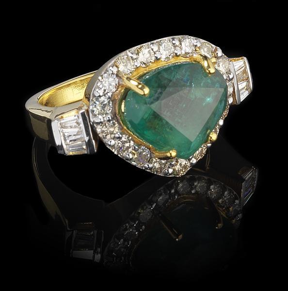 3428. *Bague sertie d'une émeraude zambienne taille cœur (4,0 ct)