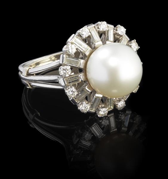 3402. Bague sertie d'une perle (D env. 11,5 mm)