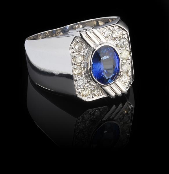 3410. Bague chevalière à plateau octogonale sertie d'un saphir taille...