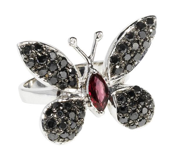 Au corps serti d'un rubis taille marquise et aux ailes pavées de...