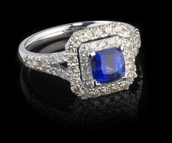 Dans un pavage de diamants (env. 1,1 ct), or 750, doigt 55-15, 5...