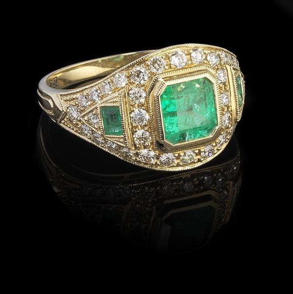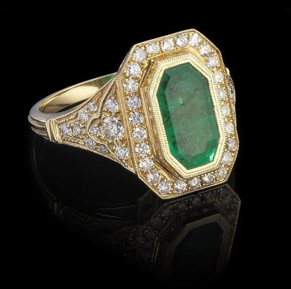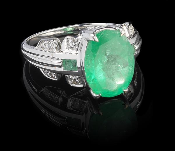 3521. *Bague sertie d'une émeraude colombienne octogonale minor oil (2...