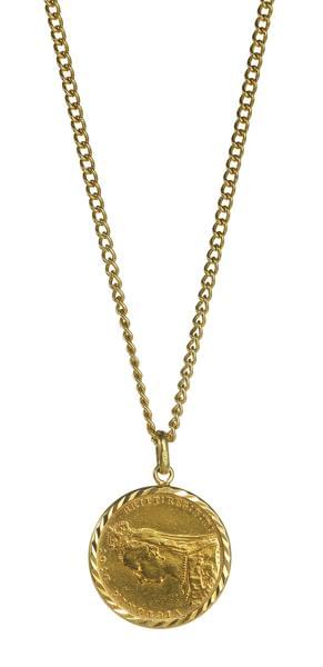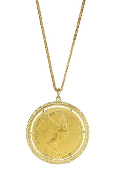 3579. Collier à maille gourmette retenant une pièce antique rehaussée...