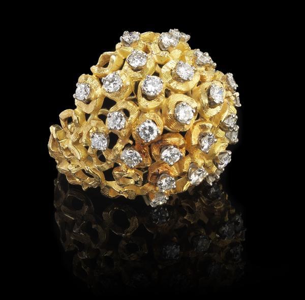 3508. Bague dôme à motifs design ajourés pavés de diamants (env. 1,4 c...
