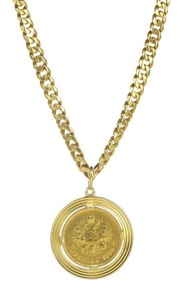 Sertie d'une pièce de 10 roubles à l'effigie du tsar Nicolas II...