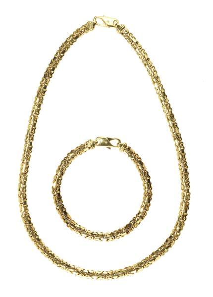 3574. Ensemble d'un collier et d'un bracelet à maille fantaisie plate