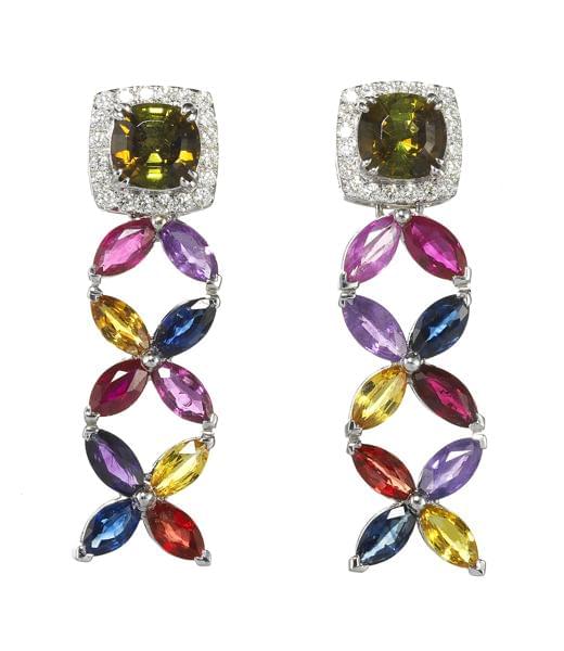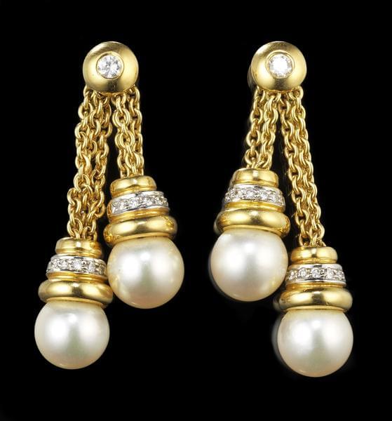 Retenant deux perles en pampilles (env. 8,5 mm) rehaussées de di...