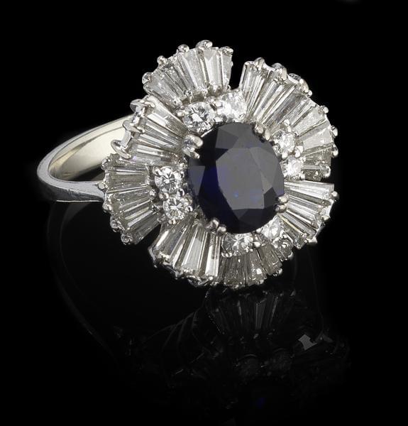 3572. Bague fleur centrée d'un saphir taille ovale (env. 1,2 ct)
