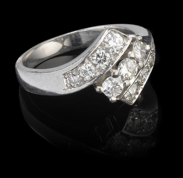 3529. Bague fleur centrée d'un diamant (env. 0,6 ct)
