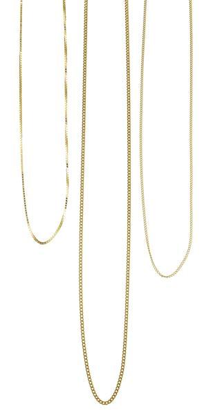Deux à maille gourmette et une à maille vénitienne, or 750, L 45...