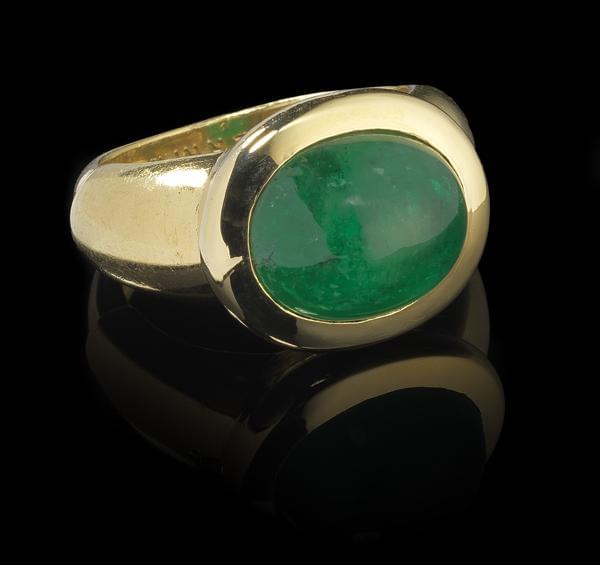 3519. *Bague sertie d'une émeraude taille cabochon (env. 5 ct)