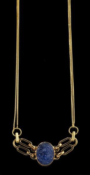 3516. Chaîne à maille gourmette retenant un pendentif serti d'une pièc...