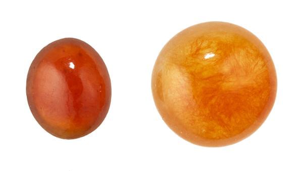 L'un rouge ovale (0,56 ct) et l'autre orange rond (1,49 ct)