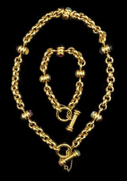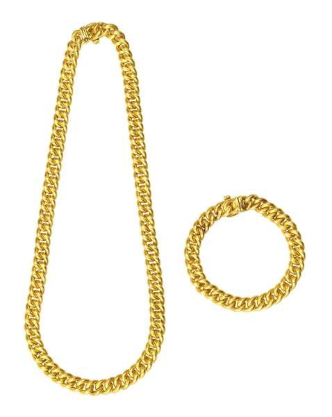 3603. Ensemble d'un collier et d'un bracelet à maille ronde