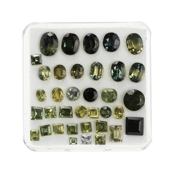 3631. Lot de saphirs verts de diverses tailles sur papier