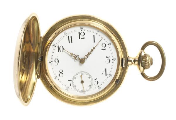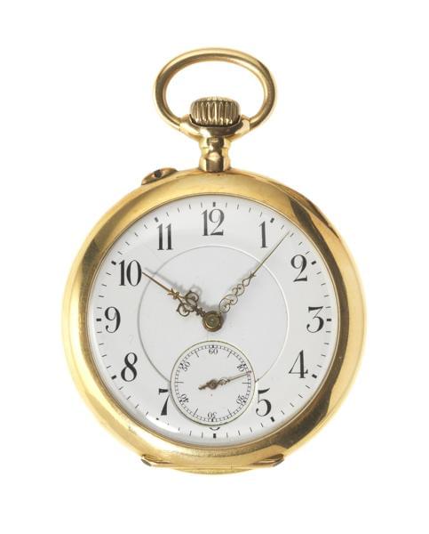 Cadran émaillé blanc, aiguilles dorées, chiffres arabes noirs, s...