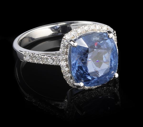 3610. Bague sertie d'un saphir birman non chauffé taille coussin (6,25...