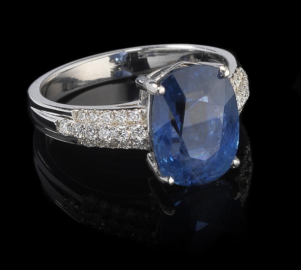 3607. Bague sertie d'un saphir birman non chauffé taille coussin ovale...