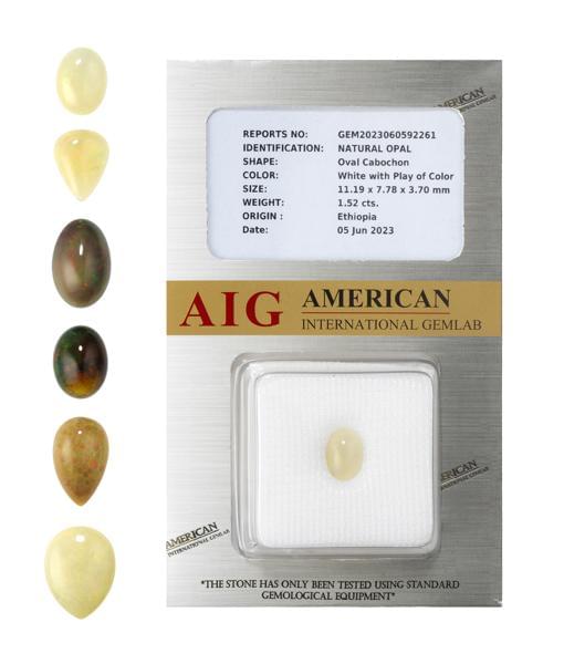 3617. *Lot d'opales taille cabochon ovale et poire sur papier