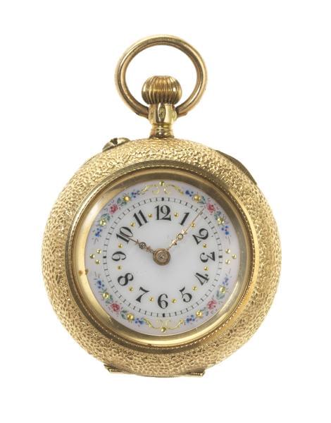 3690. Montre de poche émaillée à décor de blason entouré de motifs flo...