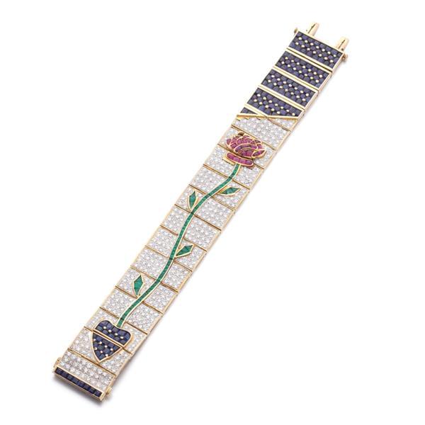 3611. Bracelet manchette articulé de style Art déco à décor d'une rose