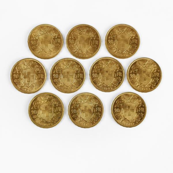 Datés 1911, 1915, 1922, 1927, 1935 et 1947, or 900, 71 g