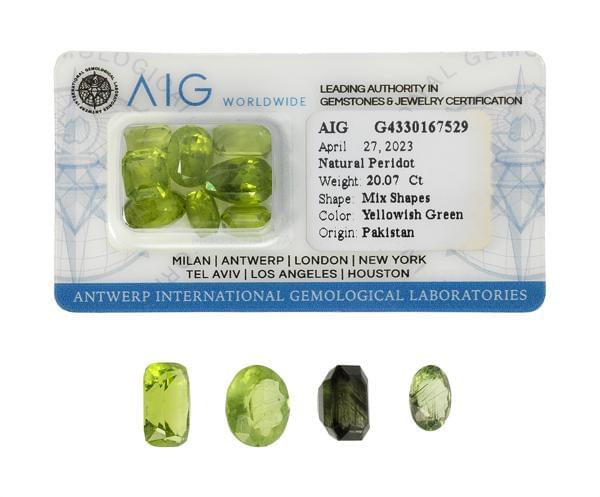 Douze péridots taille rectangle facetté (total 24,13 ct), neuf p...