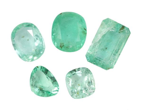 3626. *Lot de sept émeraudes de Zambie sur papier