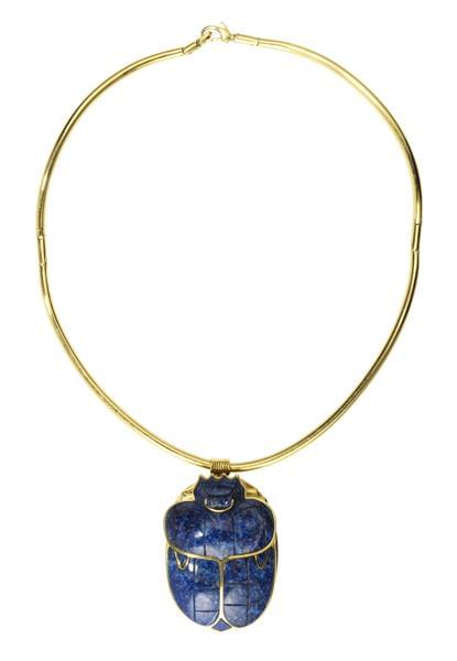 3601. Collier tour de cou retenant un important pendentif scarabée en...
