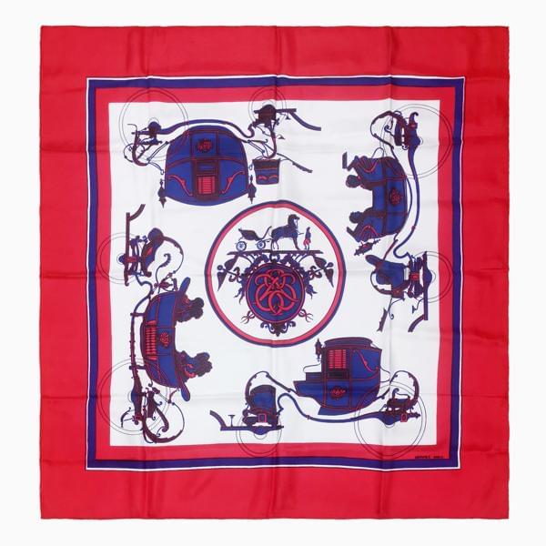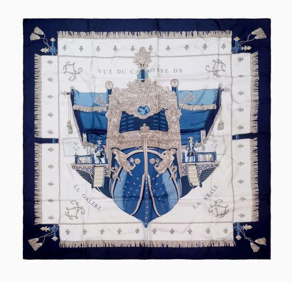 3816. Hermès, lot de deux foulards, Vue du Carosse de la Galère la Réa...