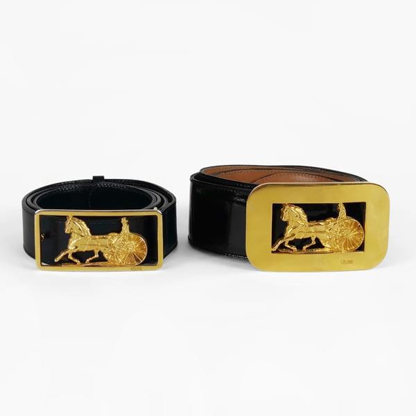 L'une en cuir vernis noir, l'autre en cuir bleu marine, L 90 cm....