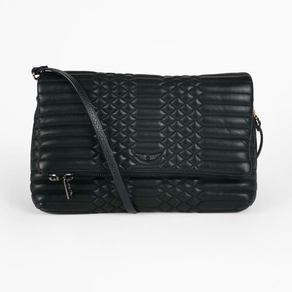 Cuir matelassé noir, fermeture en rabat aimantée et zippée, inté...