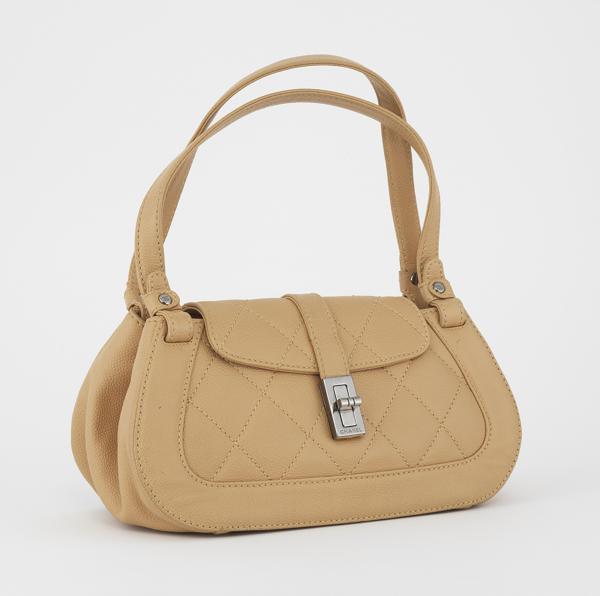 Cuir grainé et matelassé beige, fermeture en rabat siglée, intér...