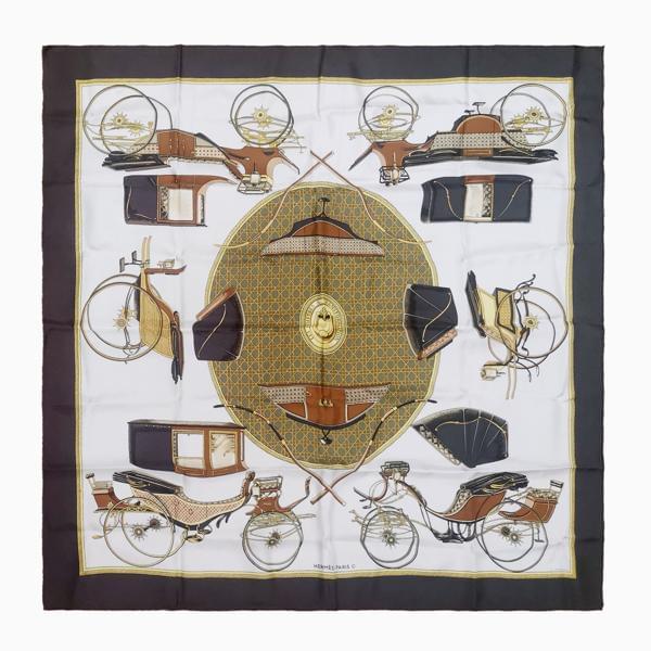 3818. Hermès, lot de deux foulards, Les Voitures à Transformations et...