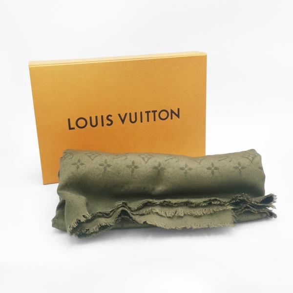 Cachemire et soie monogrammé vert kaki, 140x110 cm