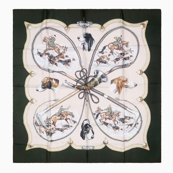 3820. Hermès, lot de deux foulards Chiens et Valets et Grand Apparat