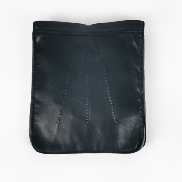 Cuir noir et surpiqûres, fermeture à pression, bandoulière, 22x1...