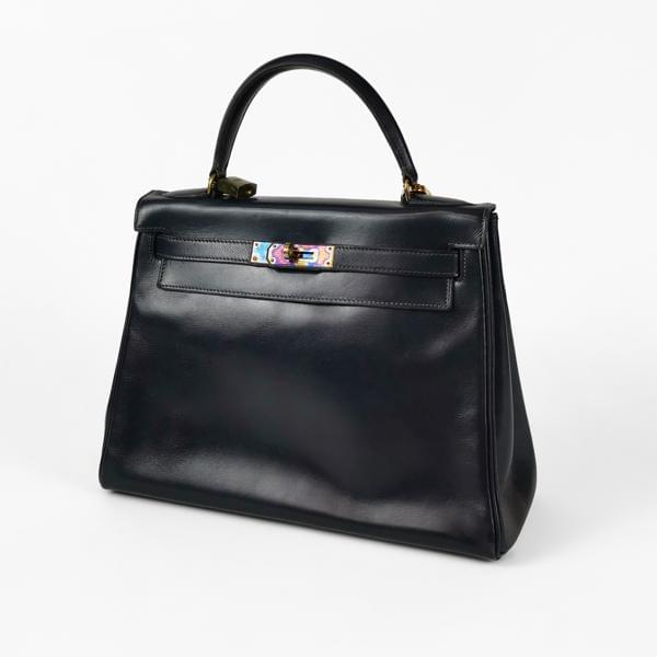 Cuir de veau bleu marine, garniture en métal doré, intérieur en...