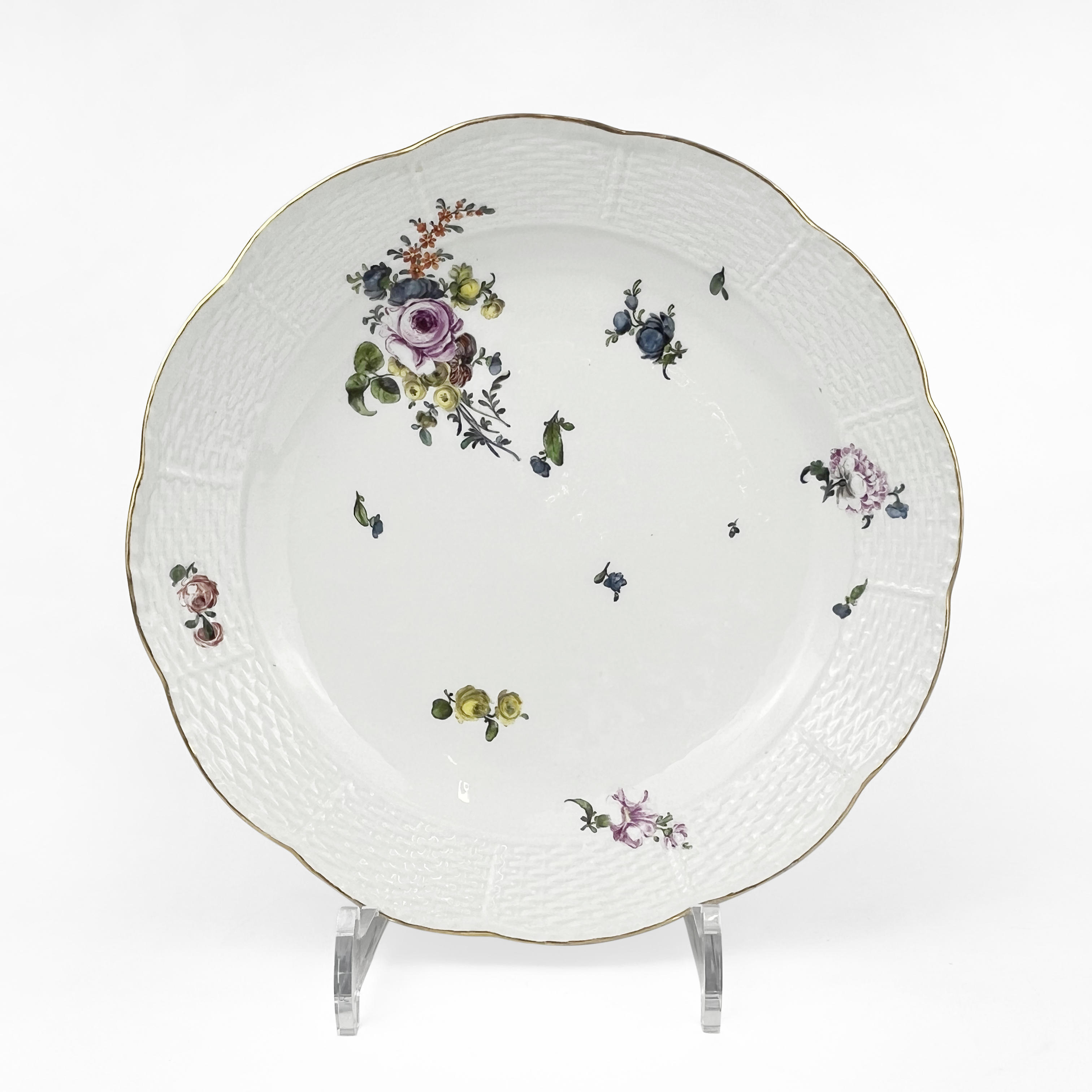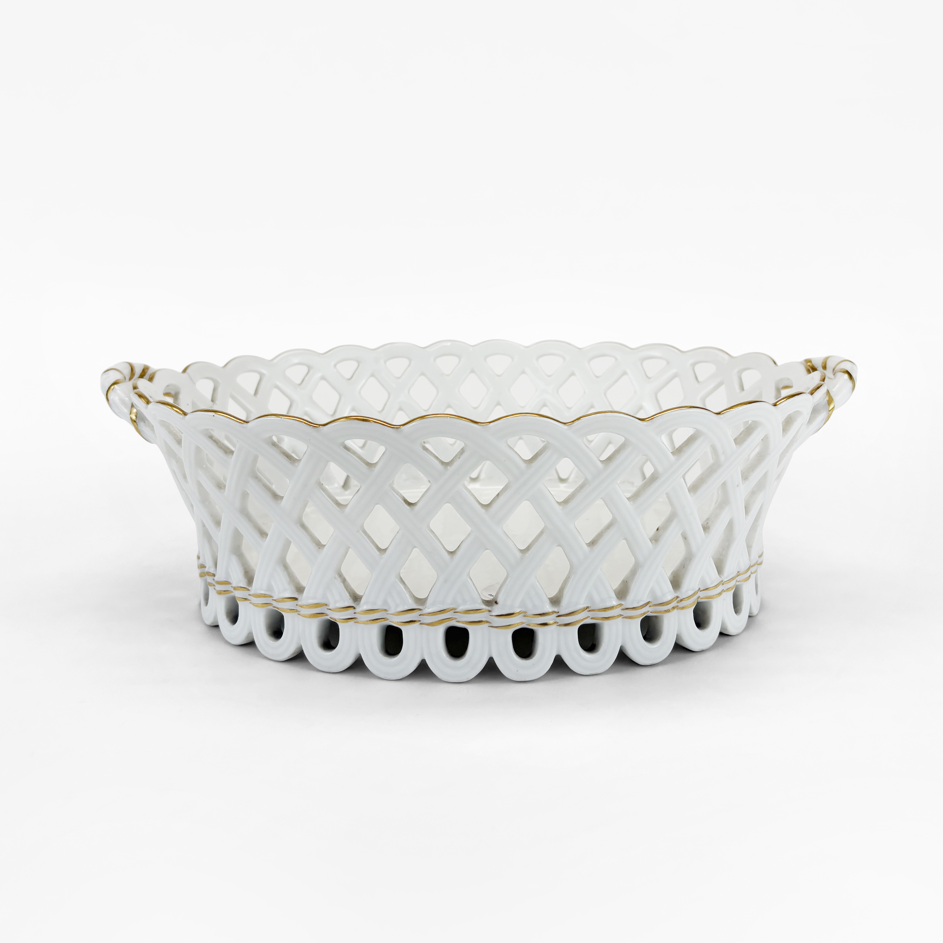 Nyon, porcelaine ajourée à décor de semis de fleurs, L 33 cm