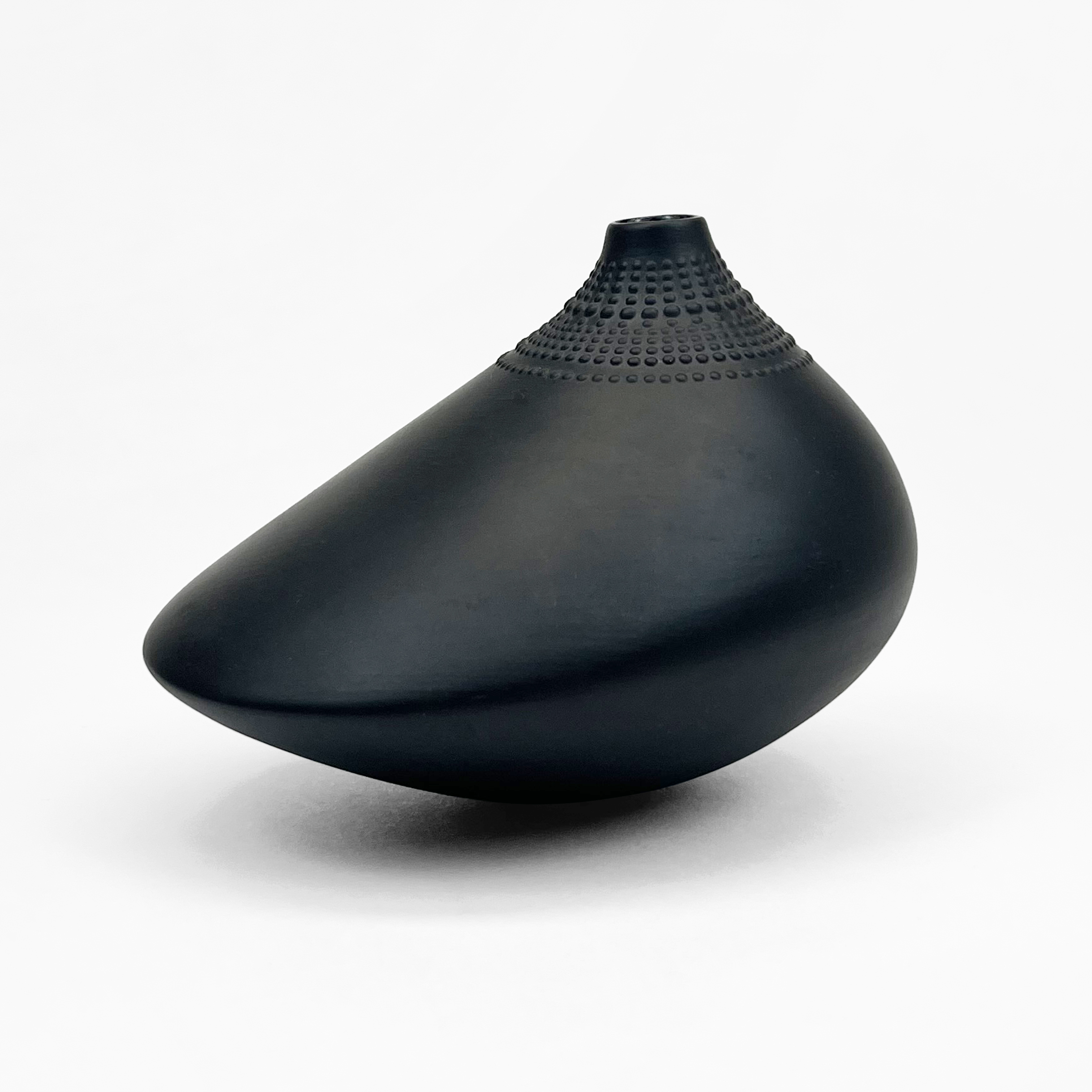 Paire de vases ovoïdes noirs, céramique, signés, H 17 cm