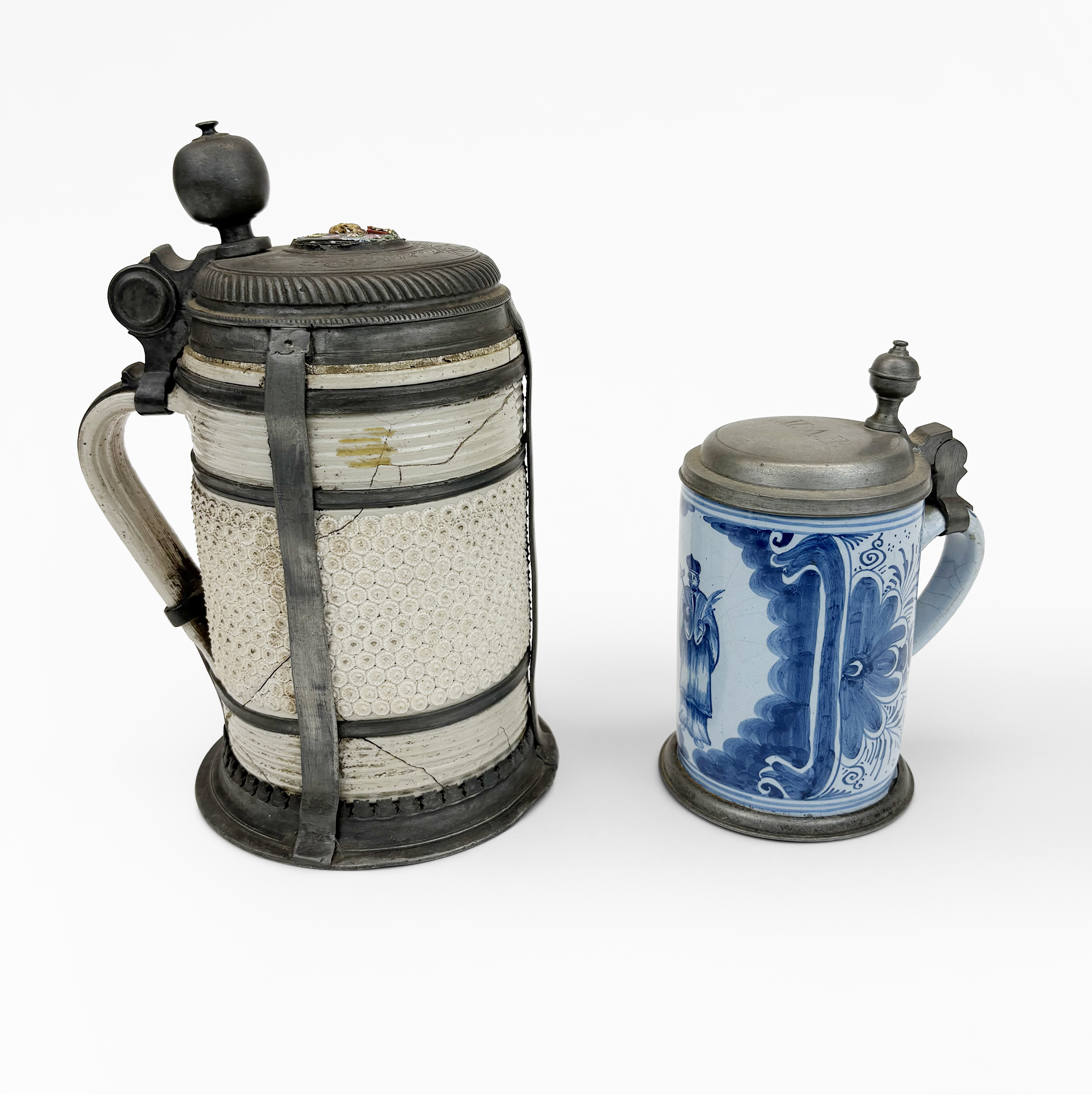 4251. Deux chopes à décor de médaillons, XVIIIe et XIXe s